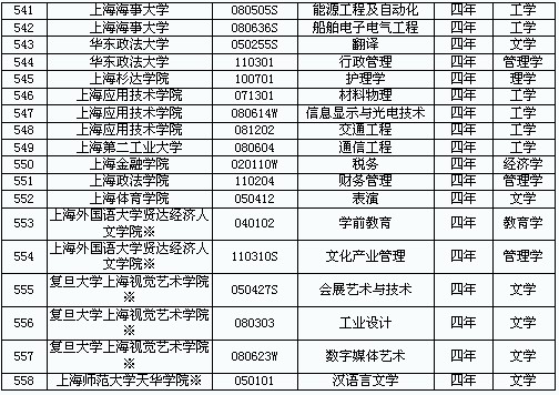 上海市高校2011年新增本科专业